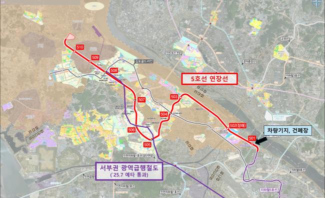 수도권에서는 서울 지하철 5호선을 김포와 검단까지 연장하는 광역철도 사업이 추진된다. 이 사업은 서울 강서구 방화역에서 인천 검단신도시를 거쳐 김포한강2 콤팩트시티 지구까지 약 25.8km 구간을 연결하는 사업으로 정거장 10개소가 설치되며 총사업비 3조5,587억원이 투입된다.